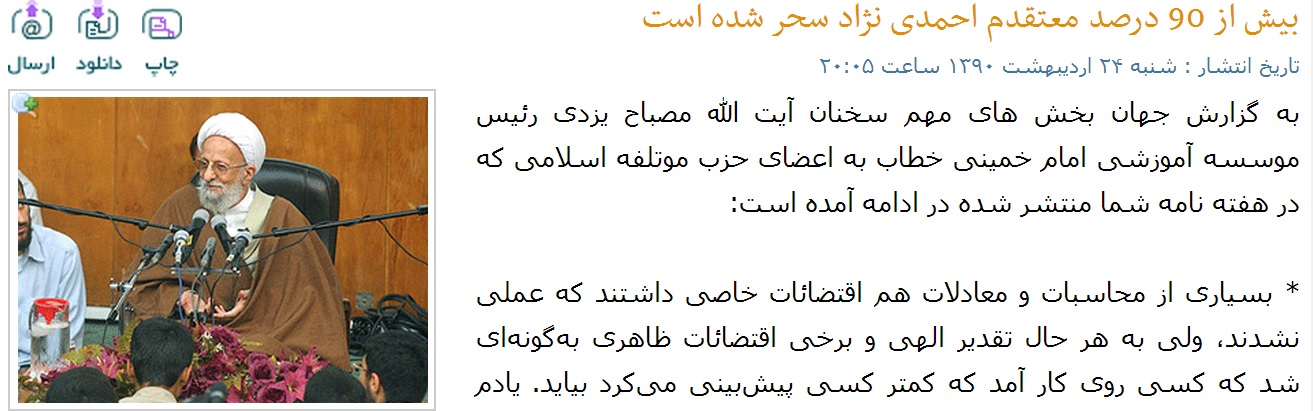 ذر این قسمت به بازخوانی و تحلیل سخنرانی جناب آیت الله مصباح یزدی که نقشی بسزا در انحرافی نامیدن دولت دهم داشت می پردازیم: